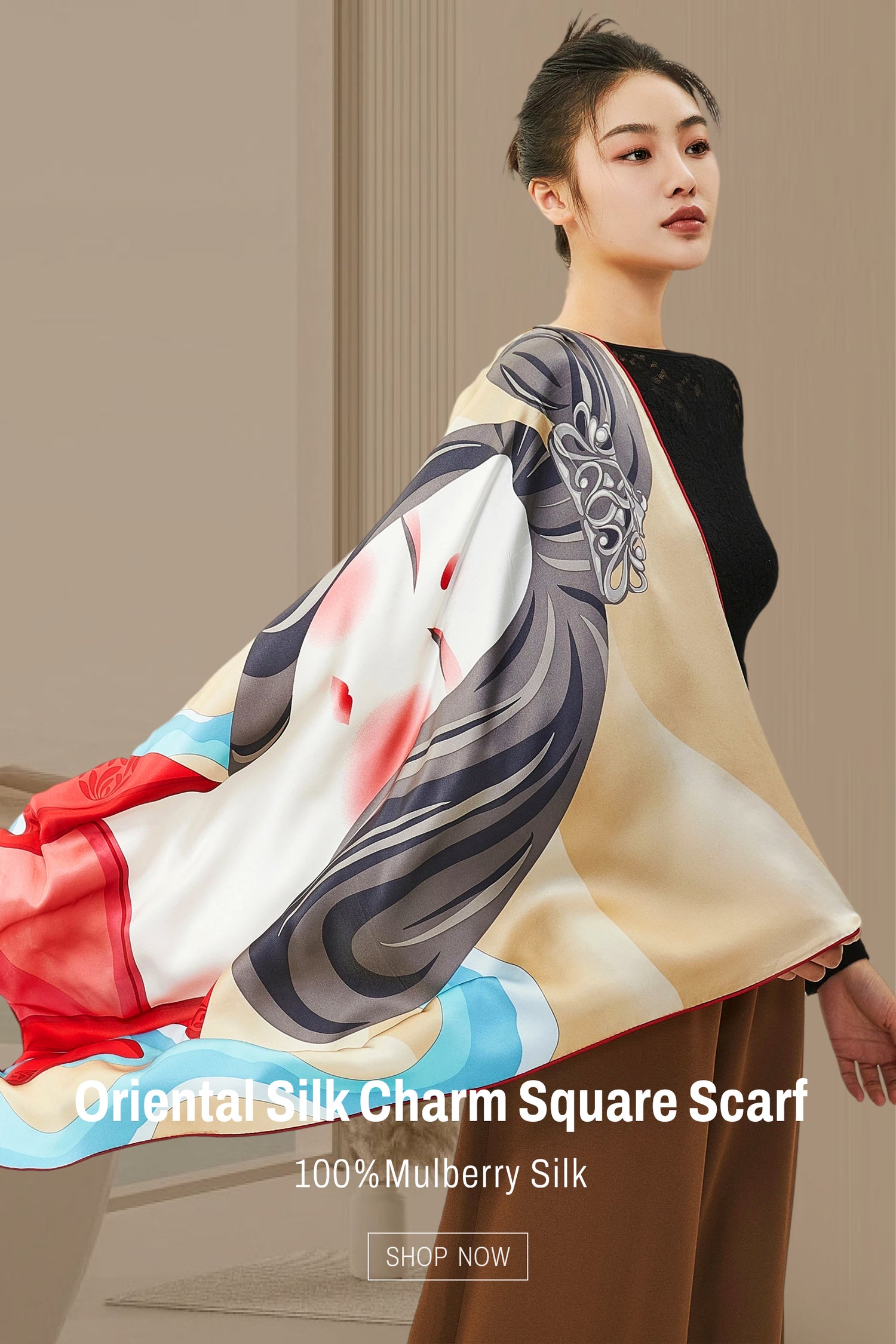 This silk scarf is made ofancient weaving and traditional hand embroidery and other non-genetic processes, silkscarves present low-key luxury, mysterious noble tempera-ment. In the natural sunlight,it permeates the colorful effectlike the sparkling water, and as colorful as the rainbow.
